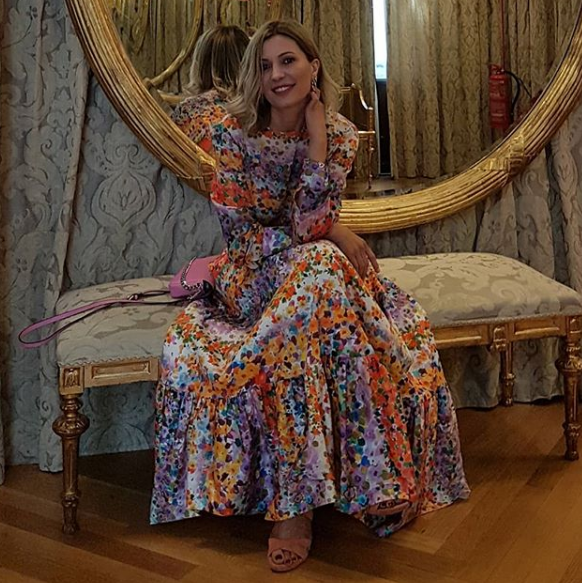 - En su segundo look encontramos un vestido estilo pareo con estampado a juego con un cinturón marrón ajustado en la cintura. Como complemento unas súper gafas de @goodbyerita y unas pulseras que hacen alusión a su título de Doña Sardina 2018.